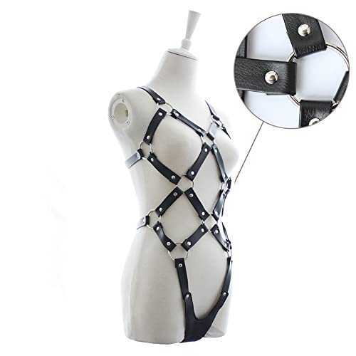 Specification: Bondage Woman Body Art sculptuur dames punk leer harnas body borstriem taille cupless lingerie instelbaar PU leer…
